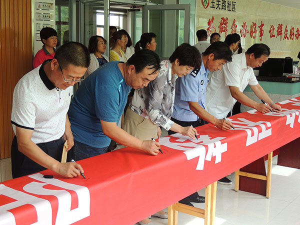 此次活动组织政法各部门负责人与社区群众通过视频直播方式观看了反邪教文艺演出,在文艺汇演中以舞蹈、歌曲、小品、提问互动等方式进行了反邪教宣传教育;其次由市普法讲师团成员对社区群众进行了反邪教相关法律知识讲座,宣读反邪教宣传倡议书;最后组织各单位负责人与社区群众在反邪教条幅上签名,以表达“抵制邪教、阳光生活”的决心。