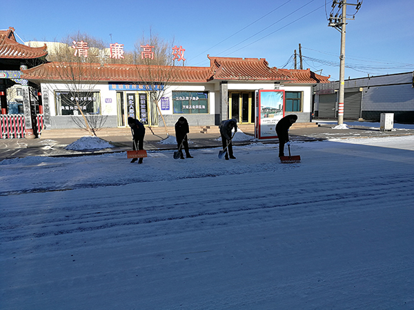 为及时清除路面积雪,保障道路交通和行人安全,根据柳园镇党委、政府安排,镇机关干部开展义务扫雪除冰行动。寒冷的天气抵挡不住干部的工作激情,领导更是率先垂范,积极带头,全体干部顶风冒雪,不畏严寒,撸起袖子、甩开膀子,拿起铁锨扫把,齐心协力地投入到清扫工作中,经过三个多小时的奋战,终于将路面积雪清扫干净,确保了道路畅通,为行人的安全通行提供了保障。