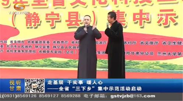 1月15号,甘肃省文化科技卫生“三下乡”集中示范活动启动仪式在静宁举行。今年的“三下乡”活动,省委宣传部等我省15家省直部门支持静宁县资金、项目、物资共计27700多万元。现场的文艺表演、健康义诊、农业技术现场咨询等活动,受到大家热烈欢迎,精彩纷呈的文艺演出也让大家在严寒的冬日感到了临近春节的关怀和温暖。