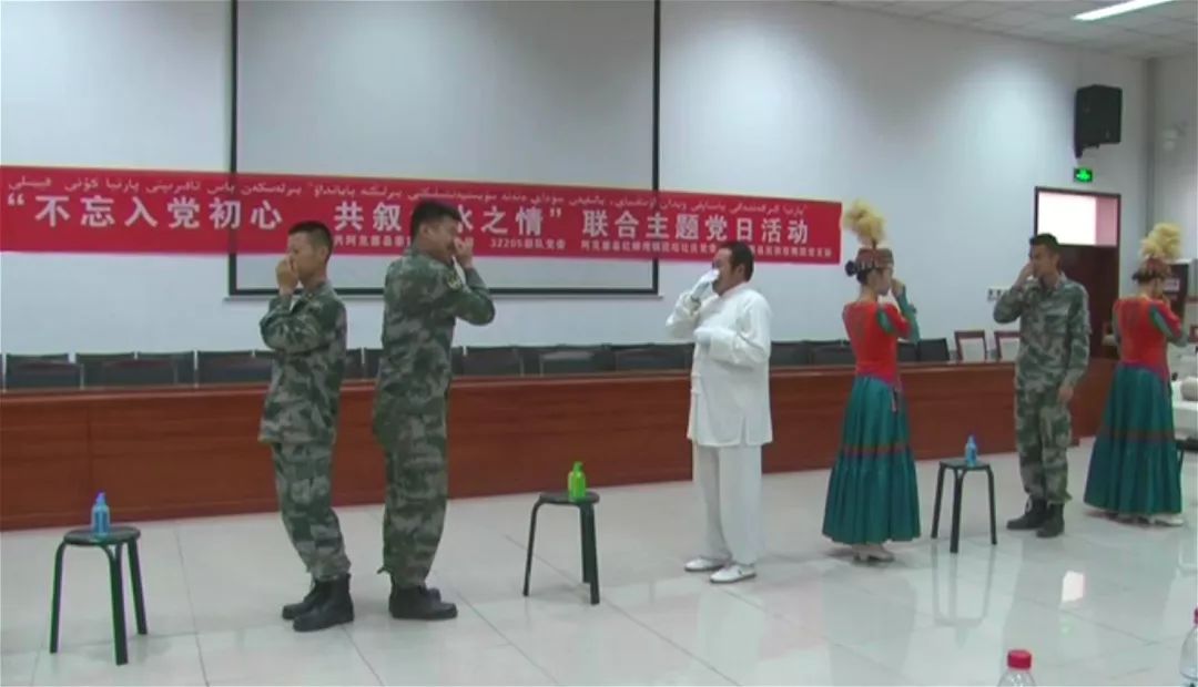 活动中,部队官兵与各单位党员开展了联谊活动,县民族歌舞团带去的歌舞表演《万马奔腾》、《黑走马》,冬不拉弹唱《在那遥远的地方》等节目,为部队官兵带去了精彩的哈萨克民俗风情表演,社区党员还带去了广场舞和太极拳等精彩表演,部队战士们表演的舞蹈《咋了吧吧》,歌曲《像我这样的人》、《忘情冷雨夜》等节目,展示了部队官兵们多才多艺的一面,期间还穿插进行了抱团、抢凳子等游戏活动,进一步增强了军地鱼水情。参加活动的社区党员们还参观了部队宿舍,共同观看了部队先进楷模吴颖霞的事迹报告宣传片,重温了入党誓词。军地党员齐聚党旗下,回忆入党初衷、坚定理想信念,使每位党员再一次接受心灵的洗礼。