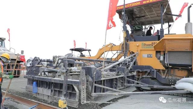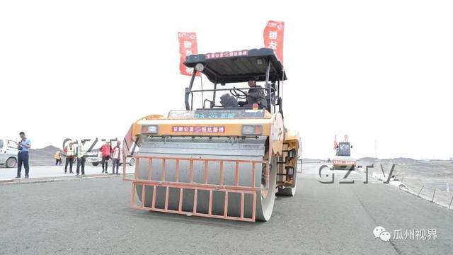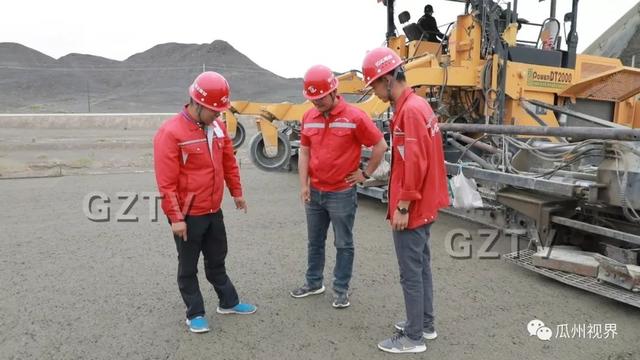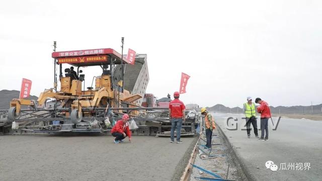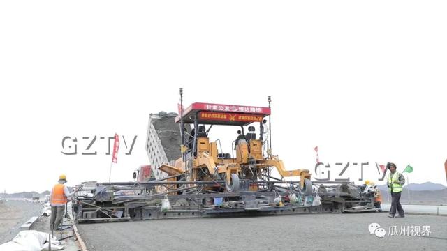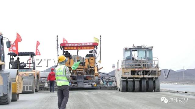 在G30连霍高速公路柳园出口至黑山口互通立交桥段施工现场,大型机械正在进行基础层铺筑集群作业施工,轰鸣声此起彼伏、响彻山谷,互通立交桥桥体工程作业也在抓紧进行,工人们抢时间、赶进度,工程管理人员随时对技术执行标准进行检测,整个建设工地,呈现出一派热火朝天的施工场景。