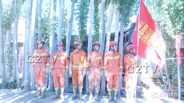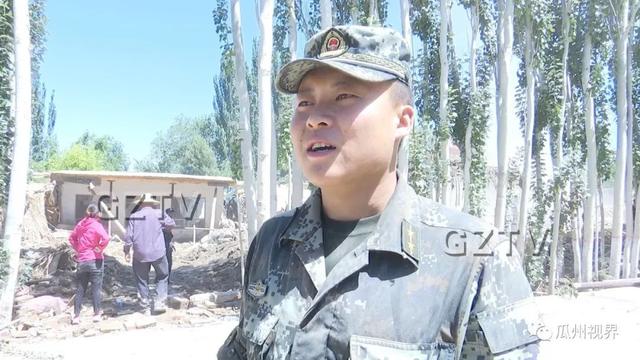瓜州县武警中队排长 王宗儒说:“今天是我们瓜州县武警中队第三天到达灾区进行抢险救援,今天早上我们中队派出十四名兵力,于六点钟到达现场,到现在已经连续奋战9小时,虽然在现场很炎热,条件也很艰苦,但是咱们十四名官兵,不畏艰险,到最危险的地方去,帮助咱们农民群众转移受灾物资,作为一名军人,我认为这是我们应尽的职责。”