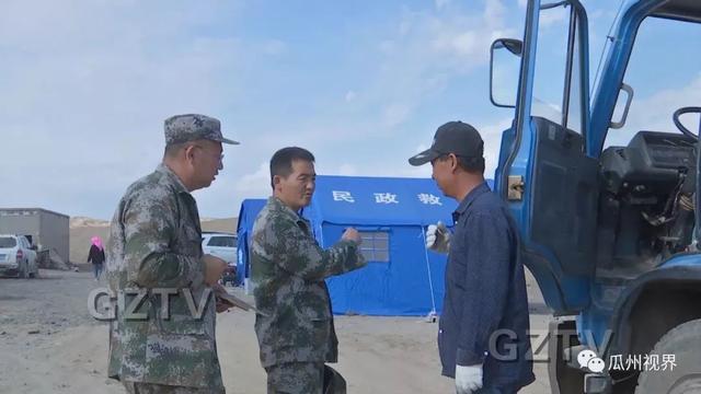 在受灾群众安置点上,瓜州县锁阳城镇的干部们正在逐户走访做心理疏导,了解受灾群众的生活状况,全力以赴保障受灾群众日常生活。