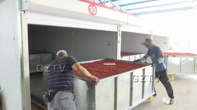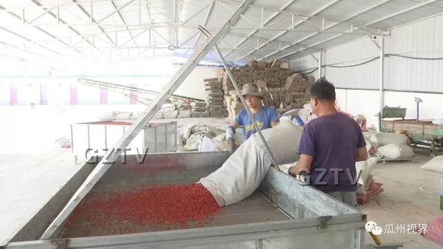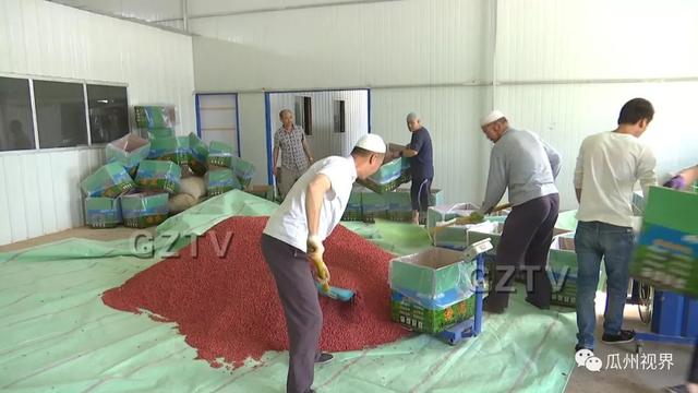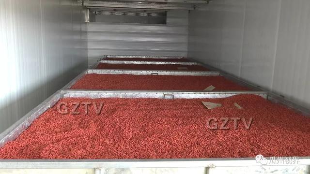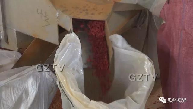 瓜州县世纪红枸杞产业发展有限公司董事长 杨生祥说:“这两天我们的货加工达到了高峰期,所以我们今天截至目前还有60多个工人在加班加点干活。现在像我们装的这些货是直接从产地发往广州市场,面向全国国际的。”