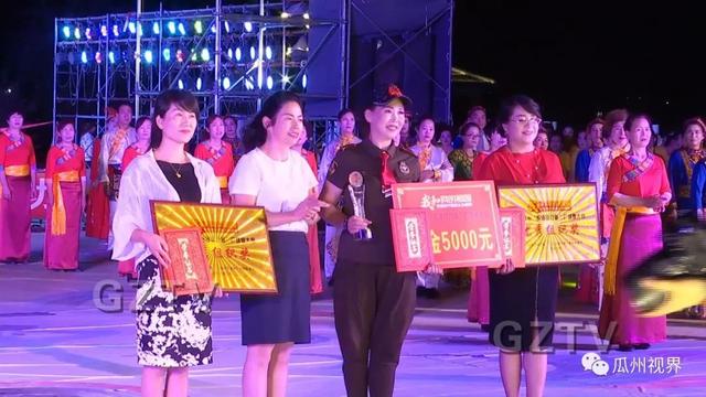 瓜州县领导鲁玉梅、王晓英、陈维为此次广场舞大赛获奖队伍及获奖单位颁奖。