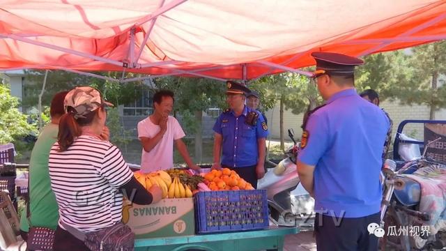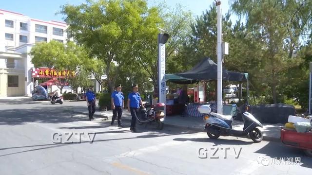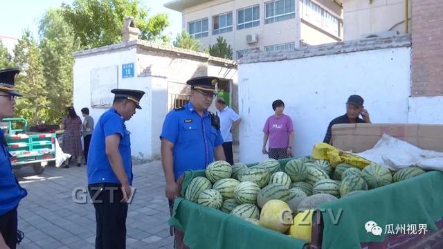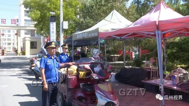 瓜州县城市管理行政执法局执法大队队长 周建军:“我们就通过给这些商贩们还有自产自销的农户在城区里面空闲的地带,可以销售的地点给人家划摊位,城市市容市貌的要求管理,现在城市执法局以网格化成精细化管理为主,基本做到“721”工作法,现在基本上群众也比较满意,市民也比较满意。”