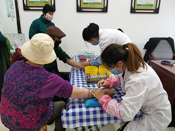 卫生院成立了由15名医务人员和村医组成的健康体检小组,分批次、分时间段、井然有序的为群众进行了各项检查。此次体检项目包括常规体检、血常规、尿常规、空腹血糖、血脂、肝功能、肾功能、心电图、B超等;截至目前,已有936名老年人接受了免费健康检查。在体检过程中,我院严格要求村民进行预检分诊,避免人员聚集,听从医务人员引导,全程佩戴口罩。