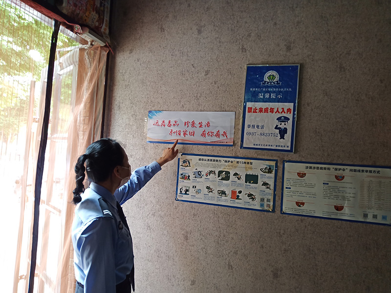 为进一步提升网吧的禁毒宣传工作力度,普及禁毒知识,杜绝新型毒品滋生蔓延。5月8日至今,敦煌市禁毒办民辅警陆续对沙州镇辖区12家网吧“四实制度”、未成年人上网、疫情防控、禁毒预防宣传标识进行抽查,并对现场从业人员及网民进行禁毒知识宣传活动。