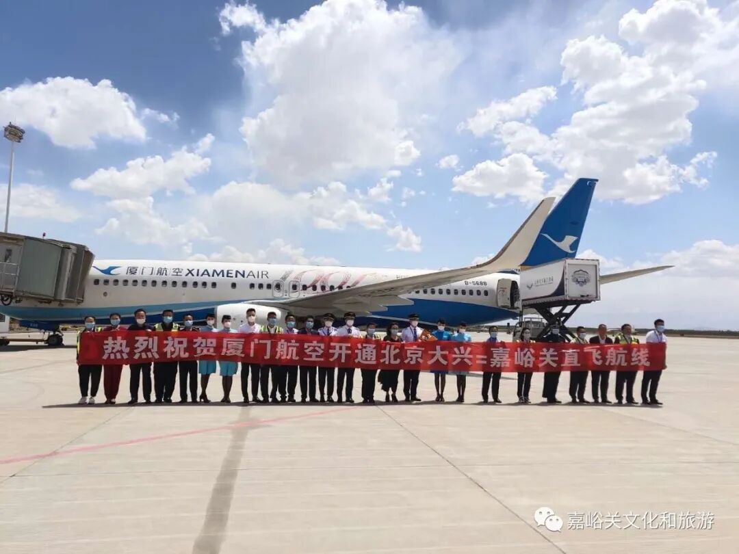该航线是嘉峪关机场历史上首次开通直飞北京的定期航线。直飞后,嘉峪关至北京的飞行时间缩短至2.5小时,极大的方便了游客及投资商的出行,促进两地间经贸、文化、旅游的互动。航线由厦门航空执飞,机型为B738,来程航班号为MF8211,10:00由北京大兴国际机场起飞,13:10抵达嘉峪关机场,回程航班号为MF8212,14:10由嘉峪关机场起飞,17:05抵达北京大兴国际机场。开航后至5月底,按照每周一、三、五、七执飞,后续根据嘉峪关、酒泉两市实际需求调整为每日执飞。