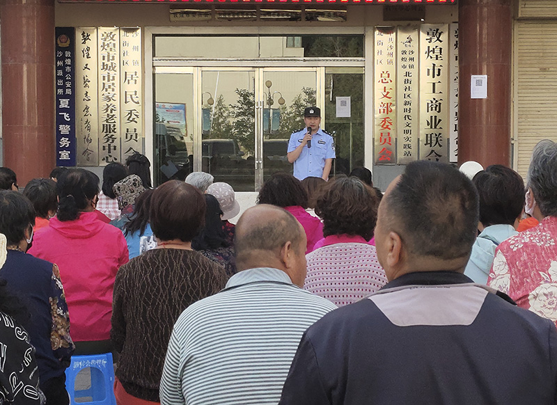 为进一步促进平安社区建设,增强辖区居民的法律意识,6月5日,敦煌市沙州镇北街社区联合社区民警在凌云小区开展系列普法宣传讲座活动。