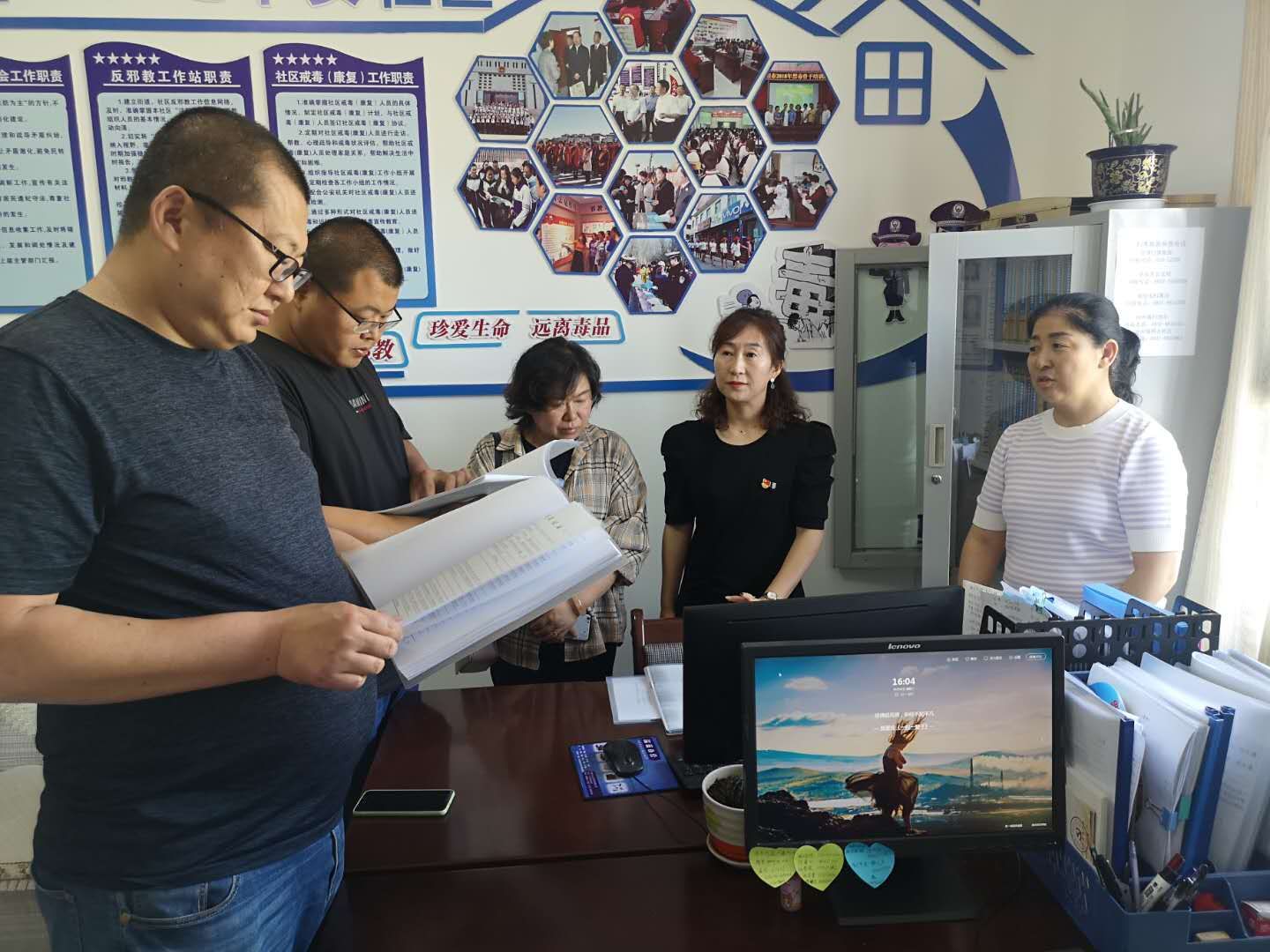 交流学习的同志走进敦煌市沙州镇桥北社区,交流学习社戒社康工作经验,参观社戒社康办公室,谈心谈话室、尿检室、文化阵地、道德讲堂、档案室等,与社区禁毒专干进行吸毒人员网格化管理、社戒社康人员建立“一人一档”等交流探讨。