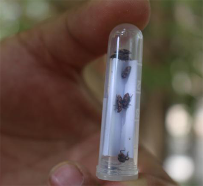 6月10日,敦煌市林业技术推广中心在月牙泉镇月牙泉村、合水村投放1.1万头黄斑星天牛捕食性天敌昆虫——花绒寄甲。北京农业职业学院、中国林业科学研究院张翌楠教授对投放人员进行了现场培训和技术指导,确保花绒寄甲释放工作顺利进行;并就黄斑星天牛绿色防控技术做了学习交流。