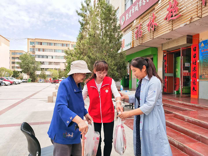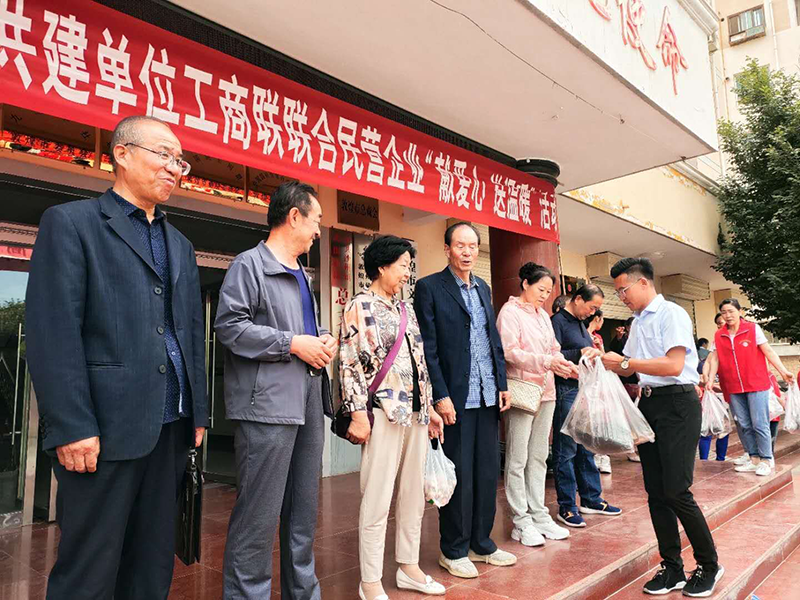 沙州镇北街社区共建单位工商联联合民营企业在凌云广场开展“献爱心_送温暖”活动