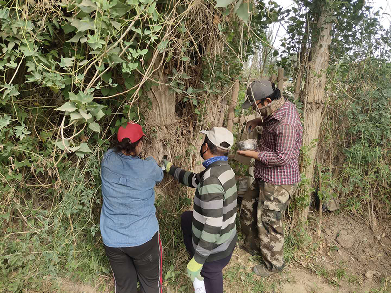 在实地察看了白马塔村三组第二轮树干注药工作和杜家墩村八组第一轮树冠喷药工作后,对今年采取的黄斑星天牛综合防治措施给予了充分肯定,并指出要密切关注黄斑星天牛防效调查和后期林木生长情况,各镇、各有关单位要抓住天牛成虫防治关键时期组织实施好树冠喷药防治工作,确保防治作业人员安全操作。在进一步巩固黄斑星天牛防控工作中取得的成效上下功夫;在察看虫害木加工厂后,指出强化虫害木监管是严防黄斑星天牛二次扩散的重要举措,各镇、各相关单位要不遗余力的做好虫害木监管工作,杜绝黄斑星天牛二次扩散。敦煌市林业技术推广中心要深入细致的总结积累黄斑星天牛防控工作经验,积极探索黄斑星天牛防控新方法,广泛动员各方力量形成强大的群防群治工作合力,使全市黄斑星天牛防控工作取得显著的成效。(敦煌市林业技术推广中心 马海丽)