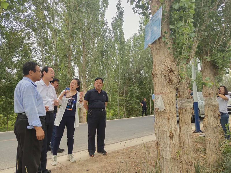 7月2日,敦煌市委副书记陈国材来到七里镇白马塔村三组、杜家墩村八组和敦煌市财源木材加工厂调研指导了黄斑星天牛化学防控及虫害木处理工作。