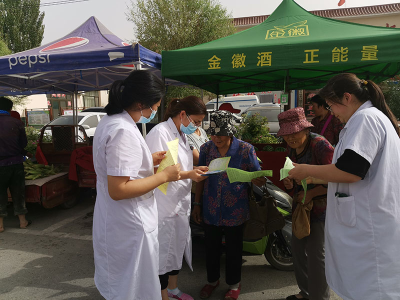 2020年7月28日是第10个“世界肝炎日”,为进一步提高群众对肝炎的科学认识,敦煌市转渠口镇中心卫生院组织医务人员利用群众赶集的有利时机开展了以 “积极预防,主动检测,规范治疗,全面遏制肝炎的危害”为主题的宣传活动。