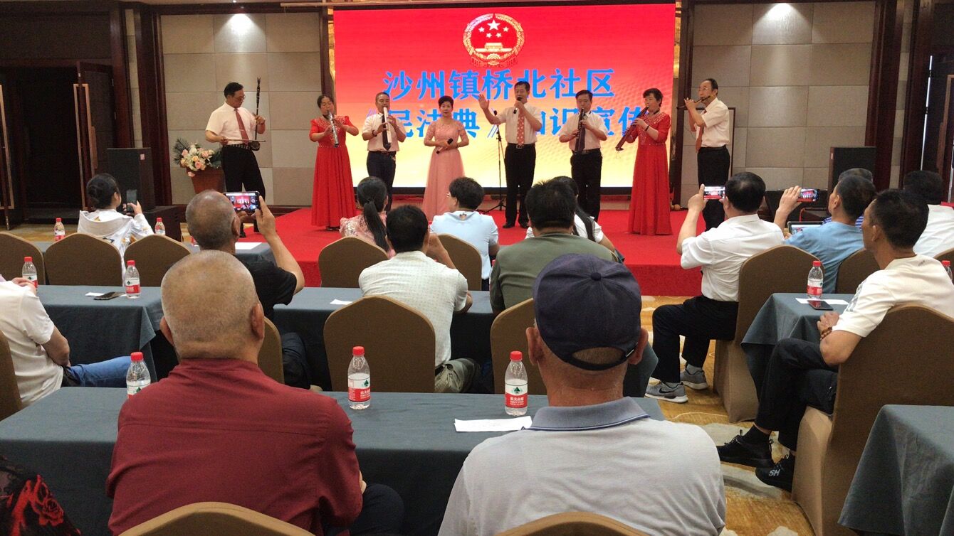 为进一步展示社区法治建设成果,提升辖区居民法治建设的获得感。7月30日上午,桥北社区在富丽华大酒店开展法治宣传文艺演出活动,参加活动的有社区网格员、退伍军人、辖区党员等共计140余人参加。
