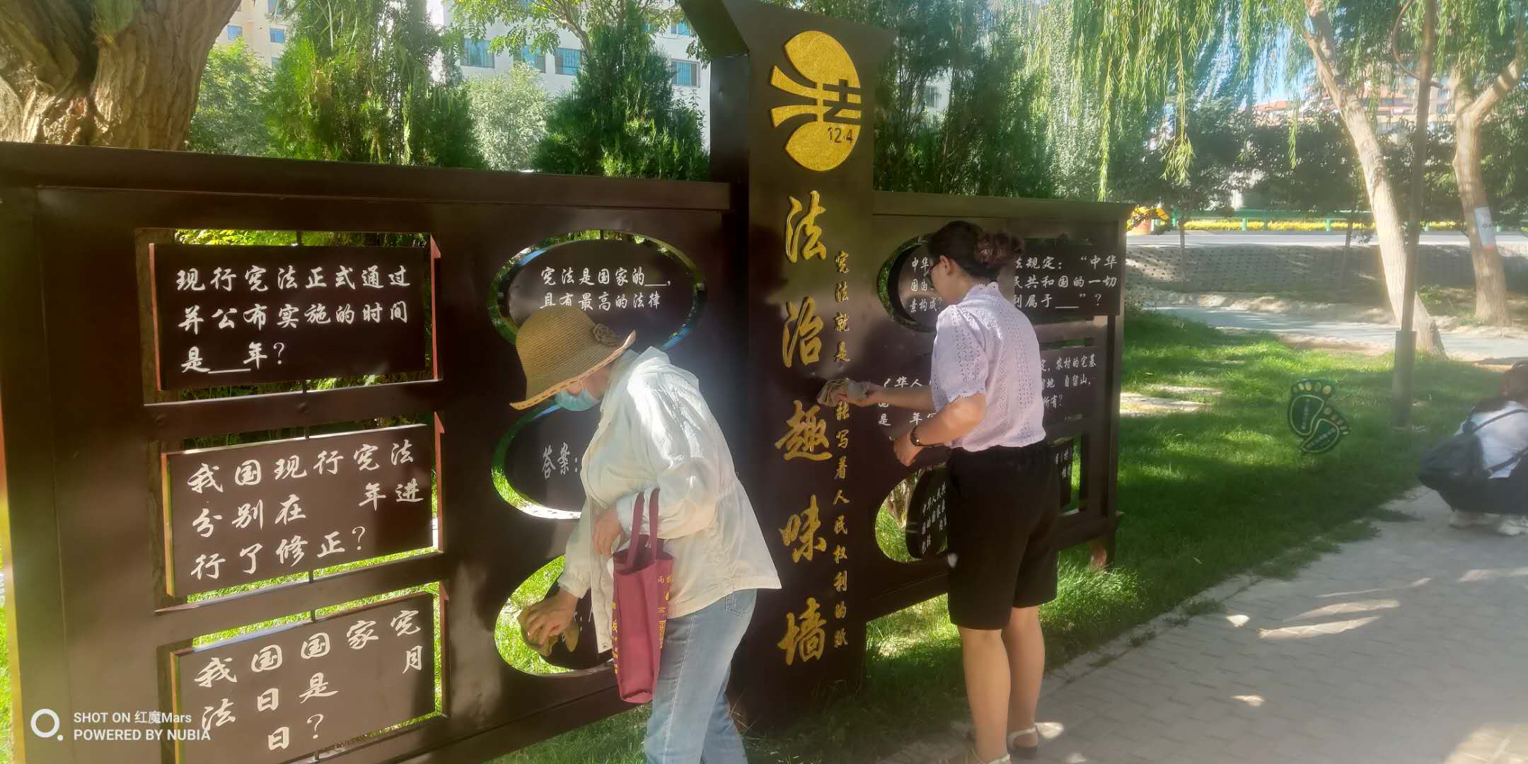 为加强和创新特殊人群管理,强化社区矫正对象监管手段,扎实有效提高社区矫正对象教育改造质量,敦煌市司法局沙州司法所于今日在市沙州镇梨园社区梨园广场开展普法公益活动,在梨园社区干部协助指导下,对广场内晨练的居民、游客赠送普法宣传的折页、凉扇,并进行环境卫生美化,对广场内的法律宣传标识牌、行为规范劝导牌、健身器材、垃圾桶等一一清洗擦拭。