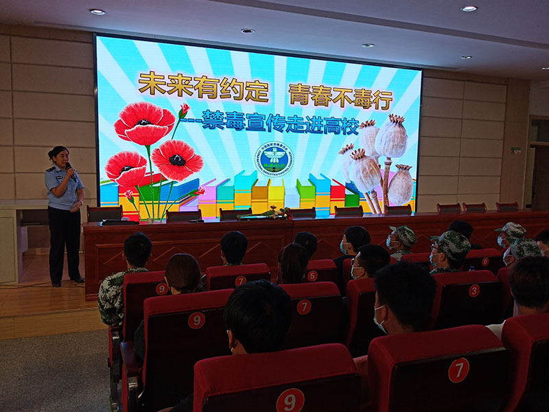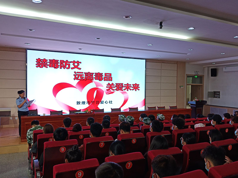 随着禁毒宣传教育片《以生命的名义》片头曲的播放,敦煌市禁毒办工作人员走进了西北师范大学敦煌学院阶梯教室,映入眼帘的是一张张年轻脸庞透出的青春光芒,一双双明亮的眼眸紧盯投影仪的视频播放。 “青春不毒行,未来有约定”禁毒宣传进高校的宣传讲座活动就此拉开帷幕。