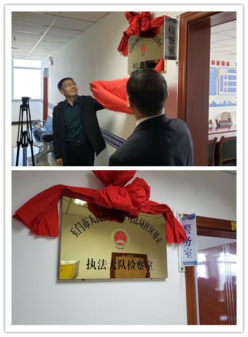 (通讯员 冯春杰 杨续)为彰显新形势下检察机关责任担当,促使全省检察机关“亮点工作计划”有效开展,玉门市人民检察院加大社区矫正工作的法律监督职能,延伸社区矫正执法环节的监督触角,创新社区矫正工作的监控流程,在玉门市司法局社区矫正执法大队成立了检察室。经过三个多月试运行,11月3日,“玉门市人民检察院驻司法局执法大队检察室”正式挂牌,标志着酒泉市首个检察机关驻社区矫正执法大队检察室全面投入运行。市政法委副书记李培峰、市检察院副检察长王志宏共同为玉门市人民检察院驻社区矫正执法大队检察室揭牌,市司法局副局长蔺振勇、市司法局矫正股全体工作人员、市检察院部分干警一同参加了揭牌仪式。