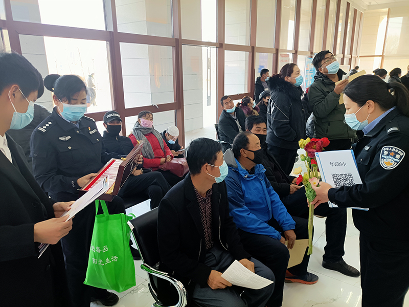 办事群众关注公众号,识别毒品仿真品,学习禁毒知识。