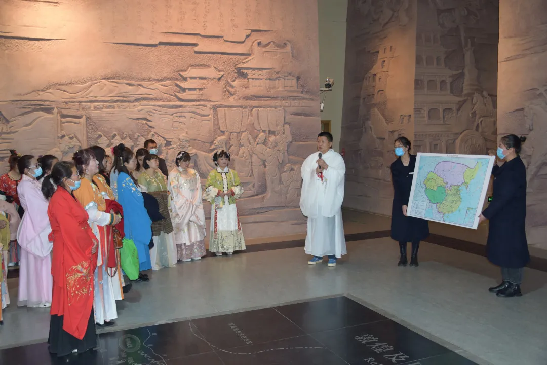 在市图书馆大厅,镇社区干部身着汉服,聆听了敦煌研究院副研究馆员武琼芳老师做的题为《从敦煌石窟看古代衣冠服饰》的主题演讲。武老师结合敦煌石窟壁画中的大量服饰资料,纵观古今、横贯中外,并从衣冠服饰风格、样式、质地,看古今服饰演变,观民族融合发展。敦煌壁画见证了敦煌在中西文化交融下的不断繁荣与成长,也印证了古代服饰文化的多元性、国际性。