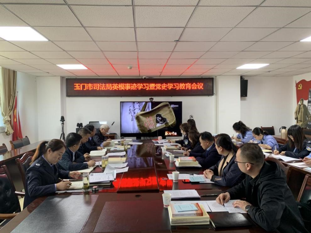 自党史学习教育开展以来,玉门市司法局着眼党史学习教育与政法队伍教育整顿相融,与司法行政重点工作互促,创新教育载体,拓宽教育渠道,教育引导党员干部汲取奋进力量、筑牢政治忠诚,推动党史学习教育走深走实。
