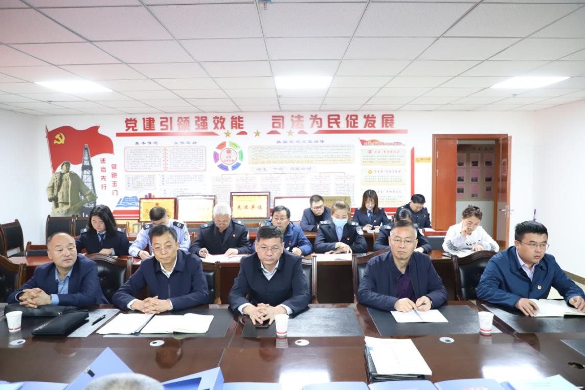 4月12日,省政法队伍教育整顿第二驻点指导组到玉门市司法局检查指导政法队伍教育整顿工作,并对学习教育环节工作进行评估验收。市委常委、政法委书记张存明陪同检查。