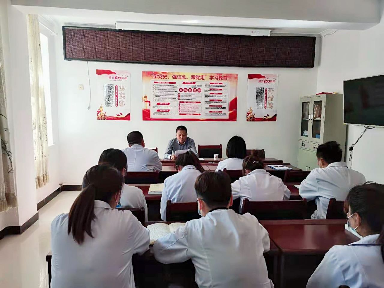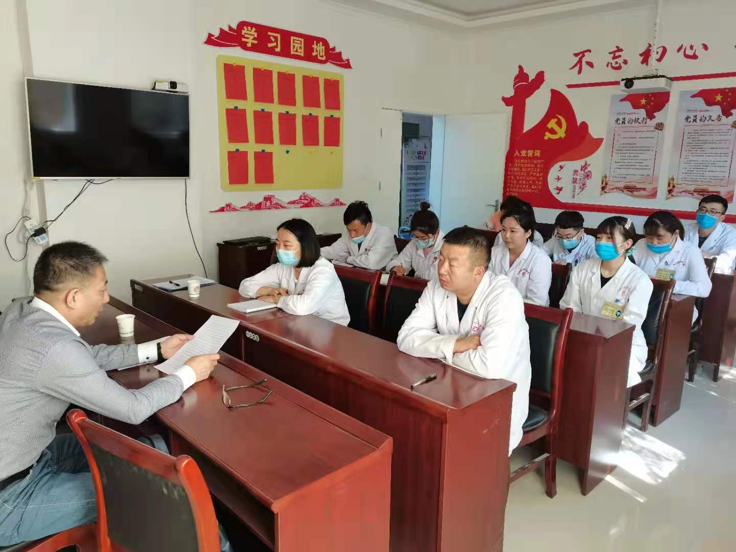 为深入开展党史学习教育活动,提高基层医务人员的党性教育,进一步推动卫健系统党史学习教育走深走实。按照全市学习党史教育部署和卫健局安排,近日,市卫生健康局包抓分管领导为阳关镇中心卫生院的党员干部上了一堂生动的党史宣讲课。