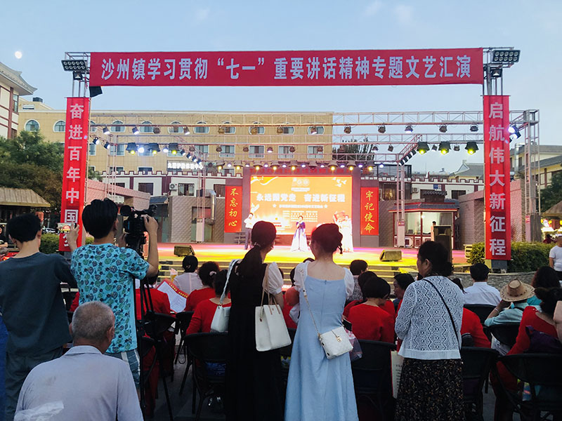 7月21日晚,沙州镇学习贯彻“七一”重要讲话精神专题文艺汇演《永远跟党走 奋进新征程》在风情城精彩上演。南街社区、北街社区联合辖区共驻共建单位、文艺爱好者同台演出,唱响红色旋律,唱响时代赞歌,共祝建党100周年。