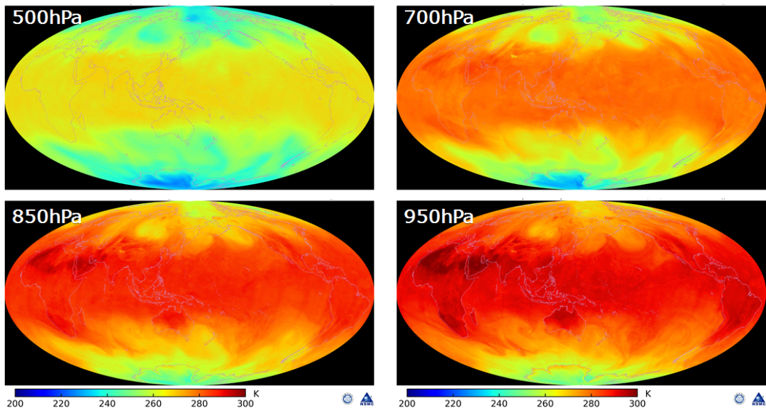 ▲风云三号e星全球大气温度场垂直层分布(2021年9月27日黎明时刻)。
