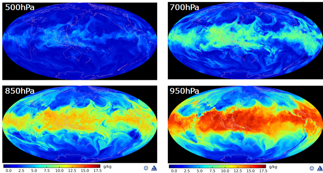 ▲风云三号e星全球大气湿度场垂直层分布(2021年9月27日黎明时刻)。