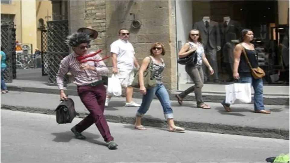 有一天我在跟我的手语老师去请教手语的打法,我按照书本上教的打出了生日快乐,聋人看着我摇摇头说,太丑了。我问为什么呢?他说,因为太复杂所以不美丽了,我说简单的应该怎么打呢。聋人说,因为手语需要身体、表情甚至内心的完全配合。所以聋人会比我们更容易看见真实或者感受真实的自己。图片上这位聋人就是在用肢体语言告诉我们大家,他现在真的很赶时间,我想大家也看出来了。
