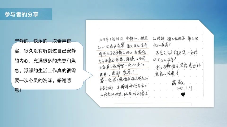 活动结束后,会有企业家站起来对我们说,原来沟通并不是聋人和听人之间无法逾越的障碍,原来聋人跟我想象中不一样,原来聋人的肢体语言非常的强,他们的专注力也很强,他们比我想象中更优秀,未来我愿意接收他们做我的同事。在活动后的一次聚会中我遇到了一位曾经参与过我们活动的朋友,他一脸兴奋地跑来要和我聊一聊他在活动中的新发现。