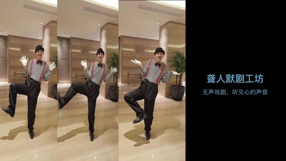 这就是刚才在开场视频里给大家演出的一位叫黄澄海的聋人,他非常喜欢默剧,他也非常需要生活。