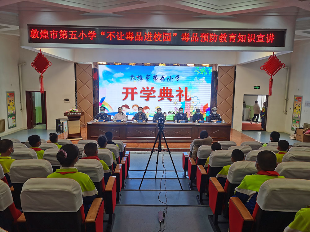 (本网讯 闫凤珍)为进一步提高在校师生识毒、拒毒、防毒意识,增强自我保护能力,营造平安和谐的校园环境,3月25日,肃州镇禁毒办工作人员走进敦煌市第五小学开展禁毒知识教育宣传活动,为学生上好禁毒“开学第一课”。