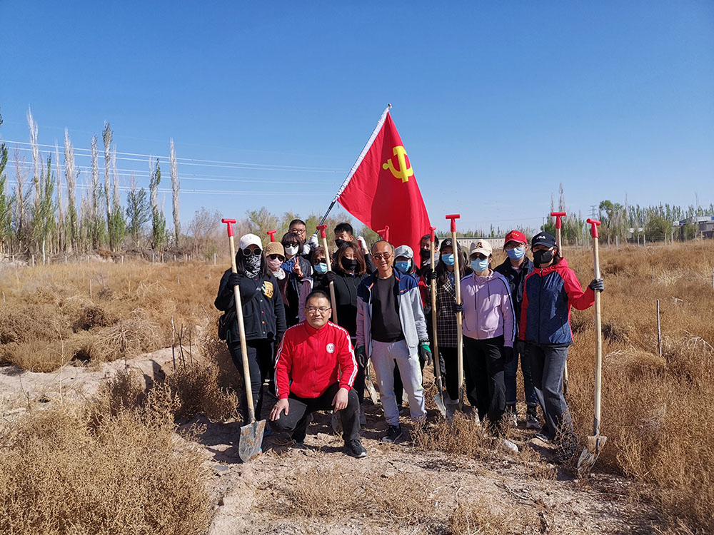4月15日上午,敦煌市永盛热力有限公司对帮扶的祁家桥村帮扶新培育树苗300多颗,同时在祁家桥村种植新疆杨、枣刺等树苗800余颗。